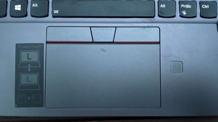 Mezi další podařený hardware spadá i touchpad typu clickpad. Jeho zapuštěné tlačítko se dalo pohodlně stisknout na zhruba 70 % plochy a podporoval všemožné multidotyková gesta. Nevyhovuje-li vám touchpad, je možné ovládat kurzor trackpointem.