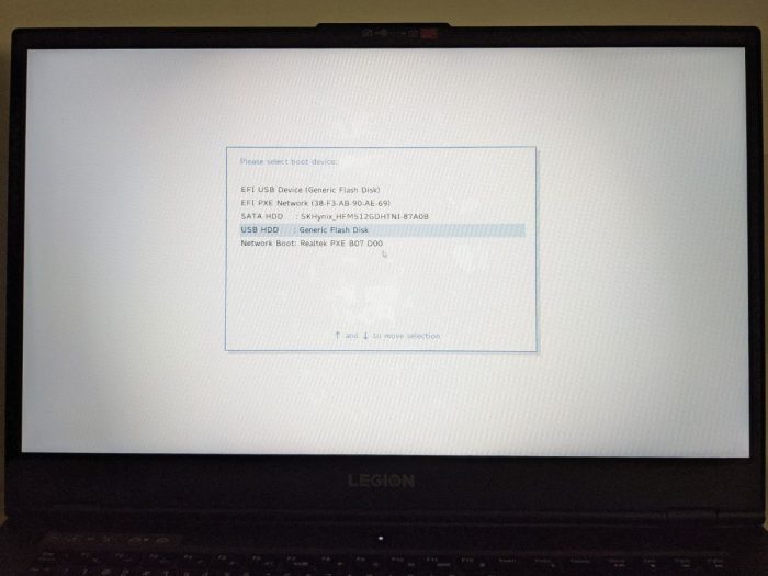 2. Na další stránce vyberte flash disk (standardně jako USB HDD) a opět potvrďte. Notebook se restartuje a načte se flash disk s instalací systému.PXL 20211013 122622486