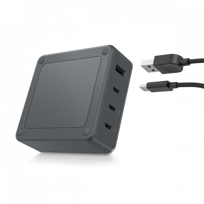 Jak již název napovídá, jedná se „charging hub“. Nabízí 3 USB-C s až 100W výkonem pro nabíjení notebooků a jedno USB-A s až 18 W.